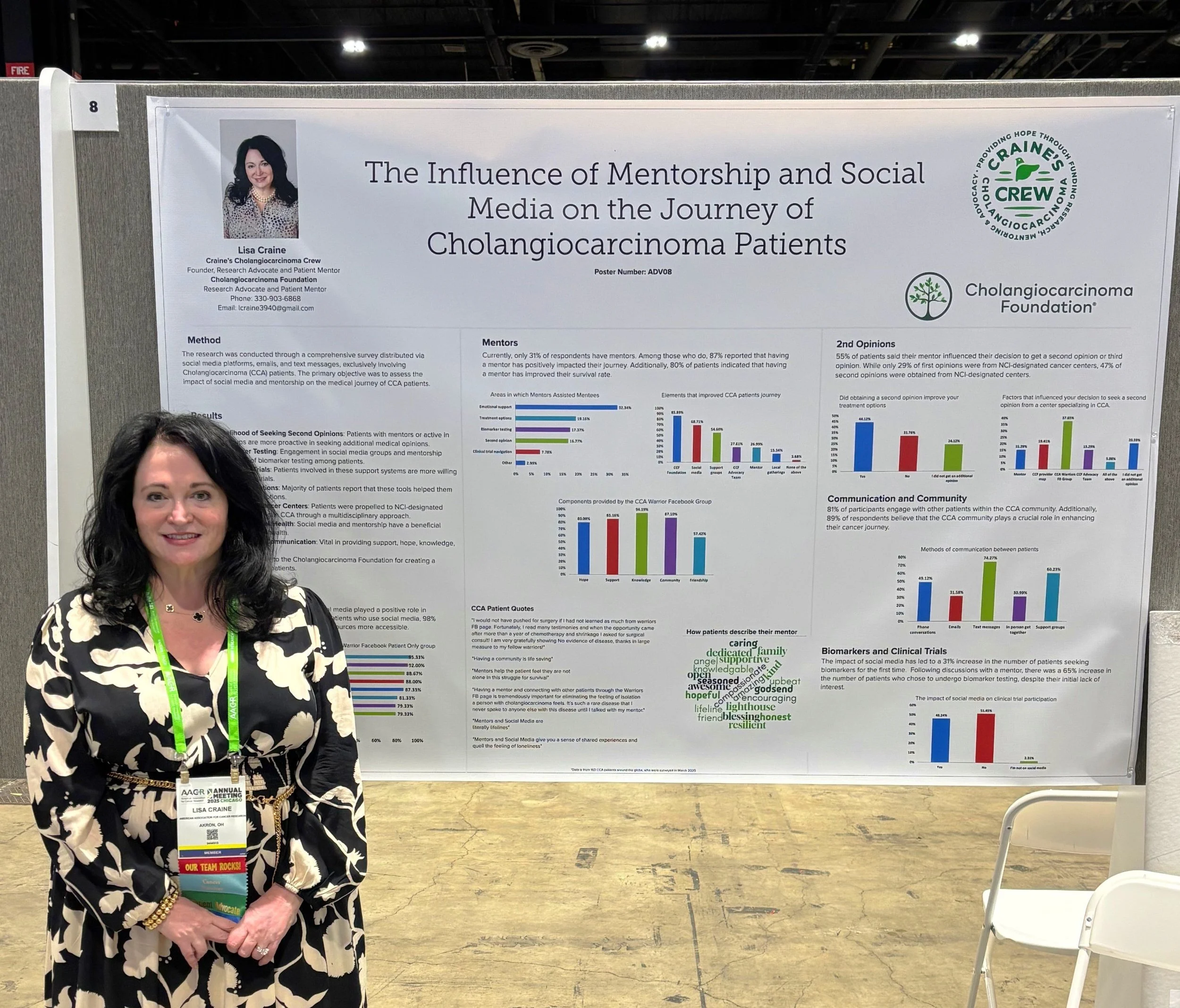 In 2011, while in chemotherapy and no longer able to work, I wanted to do something to help others and positively impact the Cholangiocarcinoma community. I remember sitting in the lobby at the Cleveland Clinic waiting for chemotherapy, and I picked up a magazine with Scott Hamilton, the Olympic Champion, on the cover. I flipped the pages to his story, and he talked about needing a 4th angel, someone who could relate to him, his diagnosis, and all the baggage that goes along with it. I decided I wanted to be a 4th Angel mentor to support and love other patients with cholangiocarcinoma. I’ve been mentoring now for over 14 years and have mentored and advocated for over 1100 patients. This is truly my passion. I’m proud to be a volunteer mentor, patient advocate, and research advocate. I love helping patients navigate second opinions and clinical trials, but my favorite part of my day is giving hope through knowledge and prayer.
